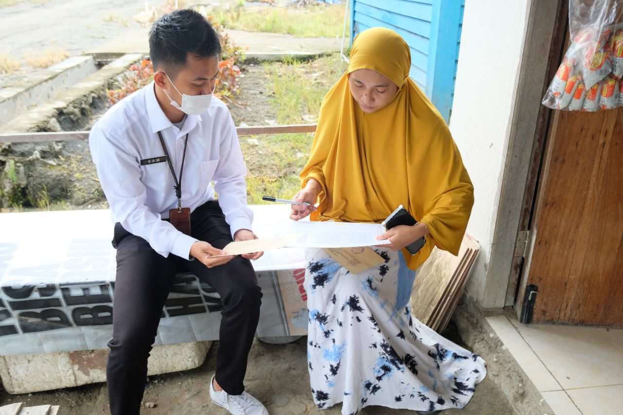 Samuel Febrianto dan Agus melakukan edukasi perpajakan wajib pajak UMKM dari ke pintu ke pintu mengingat tingkat kepatuhan Kantor Pelayanan Pajak (KPP) Pratama Tanjung Redeb belum mencapai target yang diharapkan.