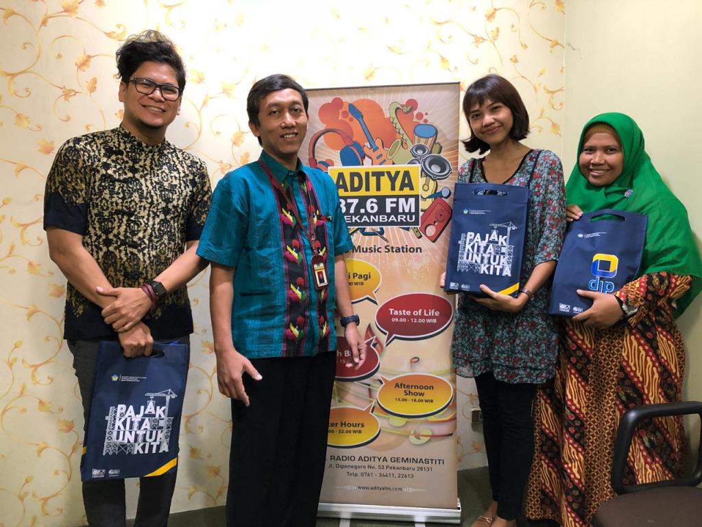 Pekanbaru, Kanwil Direktorat Jenderal Pajak Riau mengudara di gelombang 87,6 FM Radio Aditya dengan tema “eRiset, Riset di Kantor Pajak jadi Makin Mudah" (Selasa, 30/7). Obrolan yang dikemas dalam bentuk gelar wicara tersebut membahas kemudahan bagi Mahasiswa atau Non Mahasiswa yang akan melakukan riset di Direktorat Jenderal Pajak (DJP) melalui aplikasi eRiset.