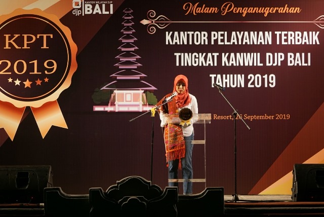 Acara di buka dengan sambutan Kepala Kanwil DJP Bali. Kemudian dilanjutkan dengan laporan kegiatan penganugerahan kantor pelayanan terbaik oleh Kepala Bidang Penyuluhan, Pelayanan dan Hubungan Masyarakat Riana Budiyanti. Pembacaan nominasi peserta penganugerahan KPT dibacakan oleh Kepala Bagian Umum I Gede Wirawiweka dan Kepala Bidang Pendaftaran, Ekstensifikasi, dan Penilaian Ida Ernawati. Kemudian pembacaan juara KPT pada tahun 2019 dibacakan oleh Kepala Kanwil DJP Bali.