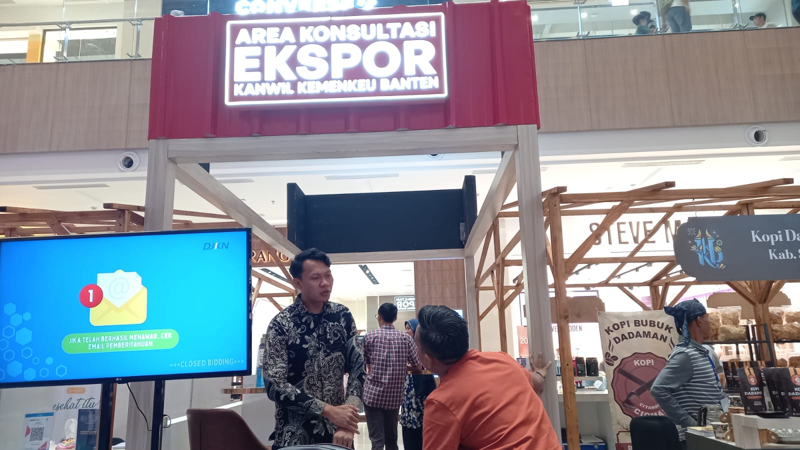 Puluhan UMKM dari berbagai daerah di Banten memadati stan Area Konsultasi Ekspor Perwakilan Kemenkeu Banten. Mereka datang untuk mendapatkan pengetahuan dan wawasan baru sebagai bekal guna membantu mengembangkan usaha ke pasar internasional. Tidak hanya para pemilik UMKM, pengunjung mall Bintaro Jaya Xchange yang kebetulan sedang berbelanja juga singgah dan mencari tahu lebih lanjut tentang ekspor.