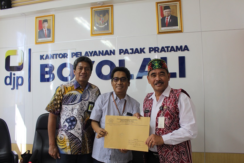 Kantor Pelayanan Pajak (KPP) Pratama Boyolali bersama Kantor Wilayah (Kanwil) Direktorat Jenderal Pajak (DJP) Jawa Tengah II dan Badan Keuangan Daerah (BKD) Kabupaten Boyolali bersinergi melakukan penyerahan data Daftar Sasaran Pengawasan Bersama (DSPB) Pemerintah Kabupaten Boyolali. Kegiatan ini dilaksanakan di Ruang Rapat KPP Pratama Boyolali (Kamis, 25/5).
