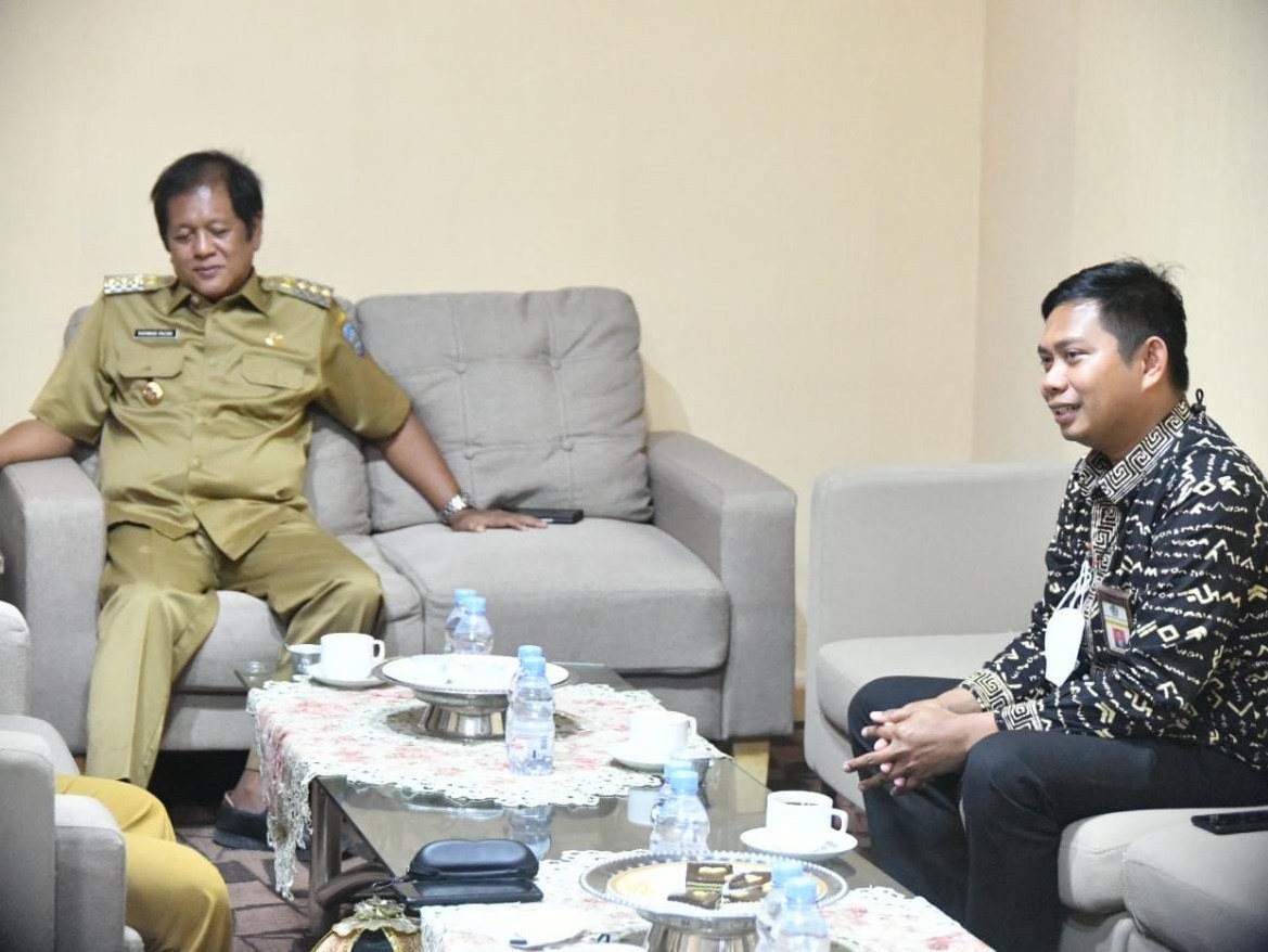 Bupati Soppeng Andi Kaswadi Razak menyambut ramah kedatangan Kepala KP2KP Watansoppeng Andi Asrizal dan tim KP2KP Watansoppeng. Sebelum pertemuan berlangsung Kepala KP2KP dan Tim telah melewati proses protokol kesehatan yang ketat.