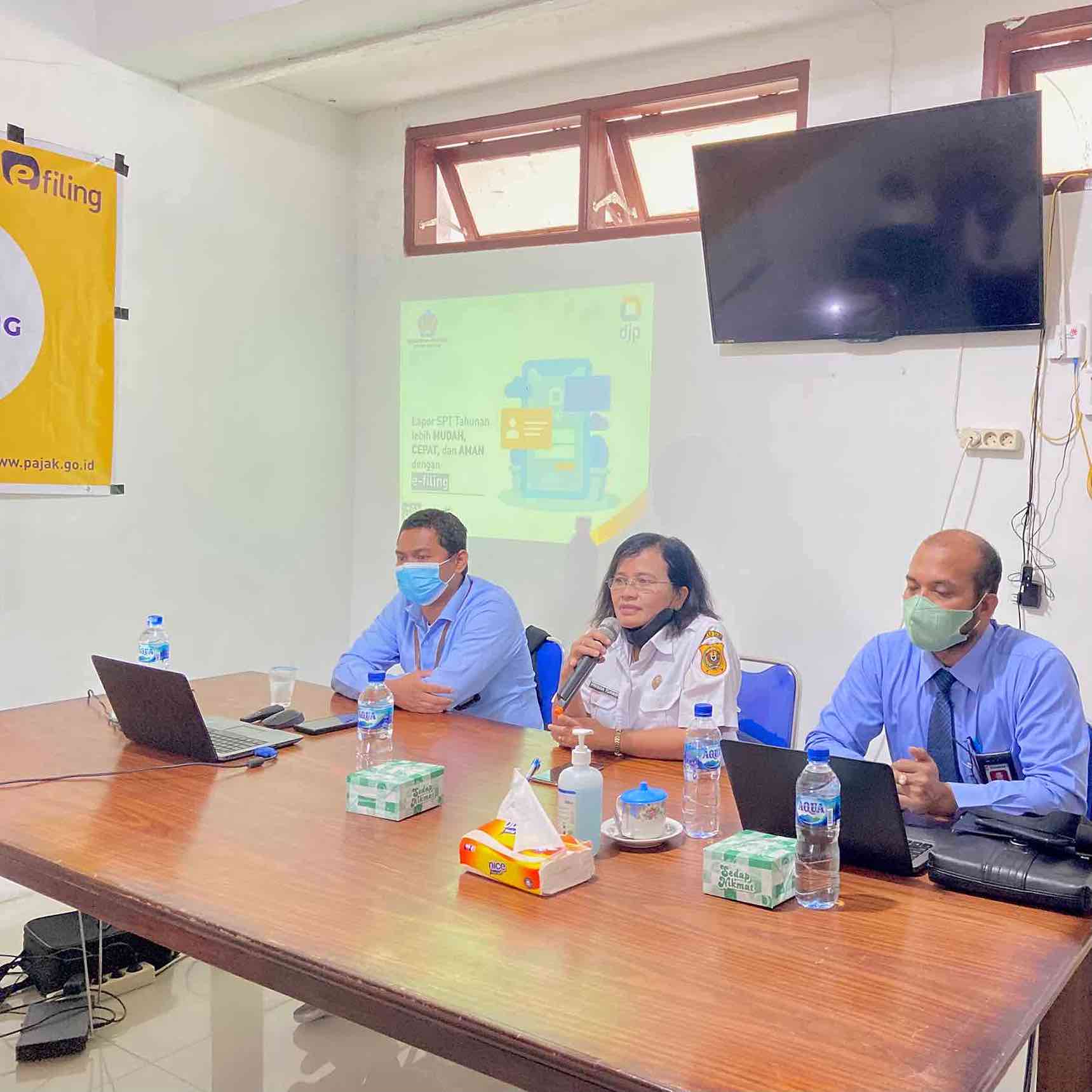 Kantor Pelayanan, Penyuluhan, dan Konsultasi Perpajakan (KP2KP) Sidikalang telah melaksanakan kegiatan Asistensi Pelaporan SPT Tahunan Orang Pribadi bagi para Bendahara UPT yang berada di bawah Dinas Kesehatan Kabupaten Dairi di Aula Dinas Kesehatan Kabupaten Dairi, Kabupaten Dairi, Sumatera Utara (Rabu, 9/3). Kegiatan ini dilaksanakan secara tatap muka dengan tetap memperhatikan protokol kesehatan.