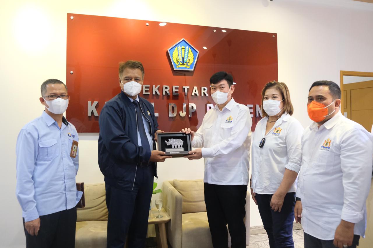 Kepala Kanwil DJP Banten Dionysius Lucas Hendrawan yang didampingi Kepala Bidang Data dan Pengawasan Potensi Perpajakan (DP3) Subandi menerima kunjungan Kerja dari Kamar Dagang dan Industri (Kadin) Provinsi Banten yang diwakili Wakil Ketua Umum Bidang Real Estate & Perumahan H. Andri Hermawan, SH beserta jajaran di Ruang Kerja Kepala Kanwil DJP Banten, Kota Serang (Rabu, 9/2).