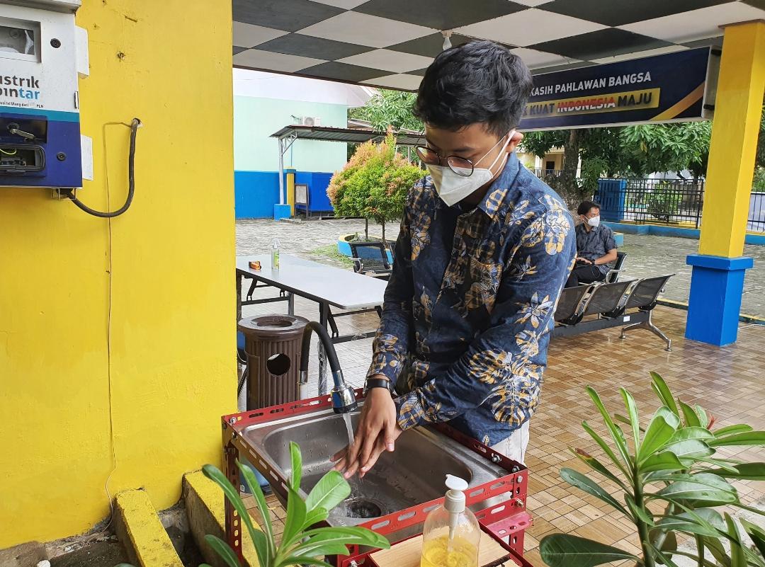 Selain dengan penyemprotan disinfektan, para pegawai KP2KP Benteng juga menjalankan protokol kesehatan dengan mencuci tangan sebelum masuk kantor.