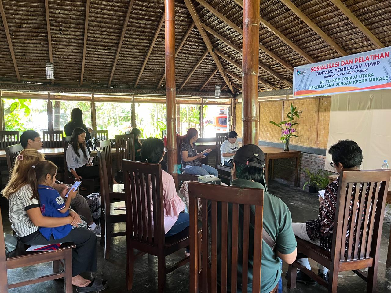 Kantor Pelayanan, Penyuluhan, dan Konsultasi Perpajakan (KP2KP) Makale sampaikan edukasi perpajakan sehubungan undangan Rumah BUMN untuk melakukan sosialisasi atas hak dan kewajiban perpajakan para pelaku Usaha Mikro Kecil dan Menengah (UMKM) (Selasa, 7/5). Kegiatan dilaksanakan di salah satu hotel yang terletak di Kabupaten Toraja Utara dan dihadiri oleh para pelaku UMKM.