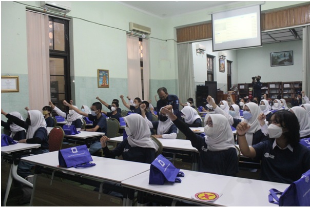 Tim Penyuluh Kantor Pelayanan Pajak (KPP) Pratama Semarang Tengah mengadakan kegiatan Tax Goes to School (TGTS) dengan tema “Generasi Muda Sadar Pajak, Wujud Bela Negara” yang dilaksanakan di Ruang Multimedia Sekolah Menengah Atas (SMA) Negeri 5 Semarang (Selasa, 2/11). Acara yang melibatkan 40 siswa perwakilan Organisasi Siswa Intra Sekolah (OSIS) tersebut nampak berlangsung meriah dengan tetap menerapkan protokol kesehatan yang ketat.