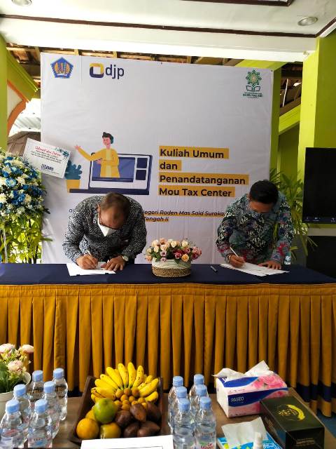 Pihak DJP diwakili oleh Kepala Kantor Wilayaha DJP Jateng II Slamet Sutantyo sedangkan dari Universitas Islam Negeri Raden Mas Said Surakartadi wakili oleh Rektor UIN Negeri Raden Mas Said SurakartaProf. Dr. H. Mudofir, S.Ag., M.Pd. Kampus UIN Negeri Raden Mas Said Surakarta yang berlokasi di Kabupaten Sukoharjo ini menambah tax center yang bekerjasama dengan Kanwil DJP Jawa Tengah II .
