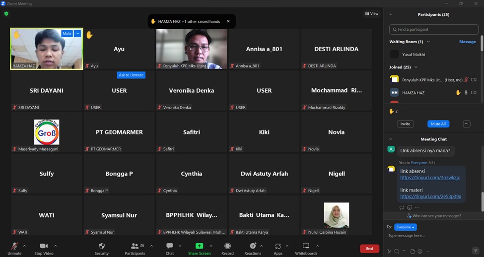 Kantor Pelayanan Pajak (KPP) Pratama Makassar Utara mengadakan kelas pajak dengan tema Kewajiban Pengusaha Kena Pajak (PKP) yang ditujukan untuk Wajib Pajak Badan maupun Wajib Pajak Orang Pribadi (Selasa, 8/8). Kegiatan ini dilakukan secara daring melalui aplikasi Zoom Cloud Meeting di Studio Makuta KPP Pratama Makassar Utara.