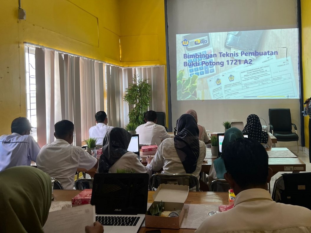 Kantor Pelayanan, Penyuluhan, dan Konsultasi Perpajakan (KP2KP) Limboto melaksanakan Bimbingan Teknis (Bimtek) Pembuatan Bukti Potong 1721-A2. Bimtek ini ditujukan untuk bendahara kecamatan se-Kabupaten Gorontalo di Kelas Pajak KP2KP Limboto, Gorontalo (Rabu, 6/3).