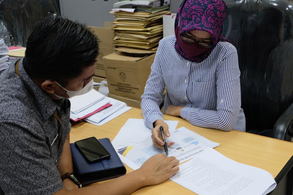 Kepala Kantor Pelayanan, Penyuluhan, dan Konsultasi Perpajakan Malinau (KP2KP) Andika Setiawan melakukan koordinasi dengan Badan Pengelolaan Keuangan dan Anggaran Daerah (BPKAD) Kabupaten Malinau yang diwakili oleh Kartini, Kepala Bidang Perbendaharaan di Kantor BPKAD Kab. Malinau (Jumat, 6/11).