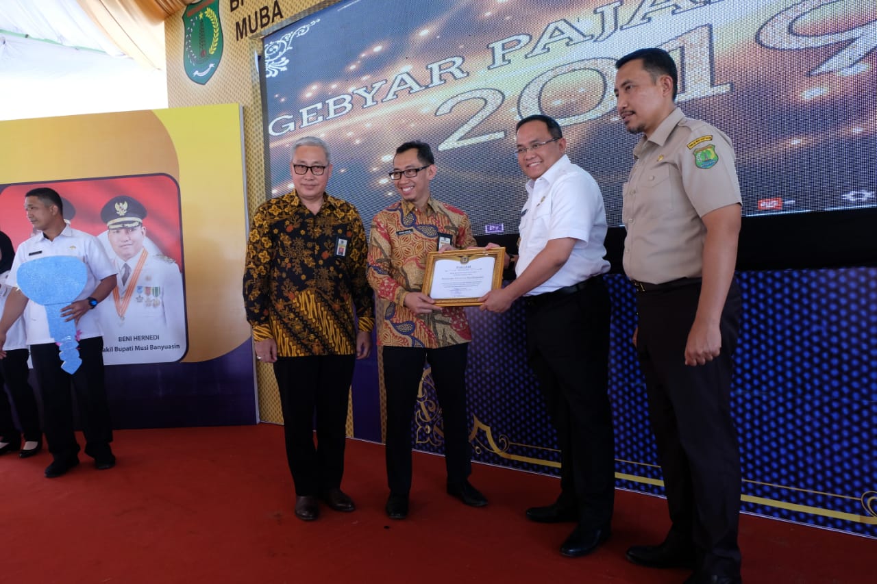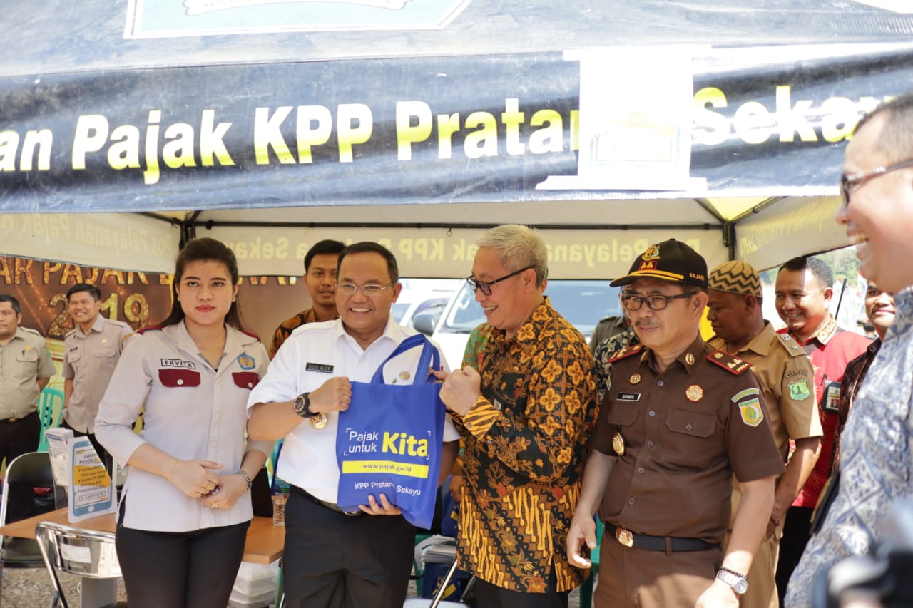 Kepala Kanwil DJP Sumsel dan Kep. Babel Imam Arifin melakukan kunjungan kerja ke Desa Tanjung Agung Barat, Lais, Musi Banyuasin (Selasa, 23/7). Di desa tersebut digelar acara tahunan Gebyar Pajak Daerah dan Pekan PBB 2019 yang dihadiri oleh Bupati Muba Dodi Reza.