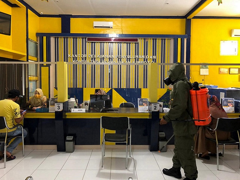 KP2KP Limboto berterima kasih kepada Brimob Gorontalo atas aksinya dalam melakukan penyemprotan disinfektan di seluruh kantor pelayanan se-Kabupaten Gorontalo, termasuk KP2KP Limboto. (FW)
