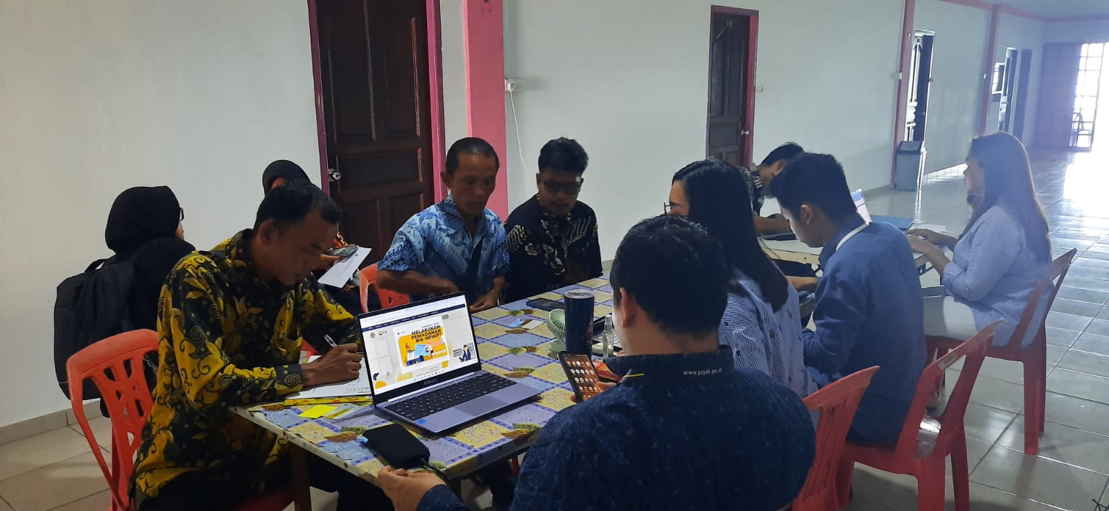 Kantor Pelayanan, Penyuluhan, dan Konsultasi Perpajakan (KP2KP) Tanjung Batu mengadakan kegiatan asistensi Pelaporan Surat Pemberitahuan (SPT) Tahunan dalam bentuk Pojok Pajak di Penginapan 868 Kecamatan Moro, Kabupaten Karimun, Kepulauan Riau (Rabu, 28/2). Pojok Pajak merupakan kegiatan yang dilakukan dalam rangka memberikan layanan perpajakan di luar kantor.