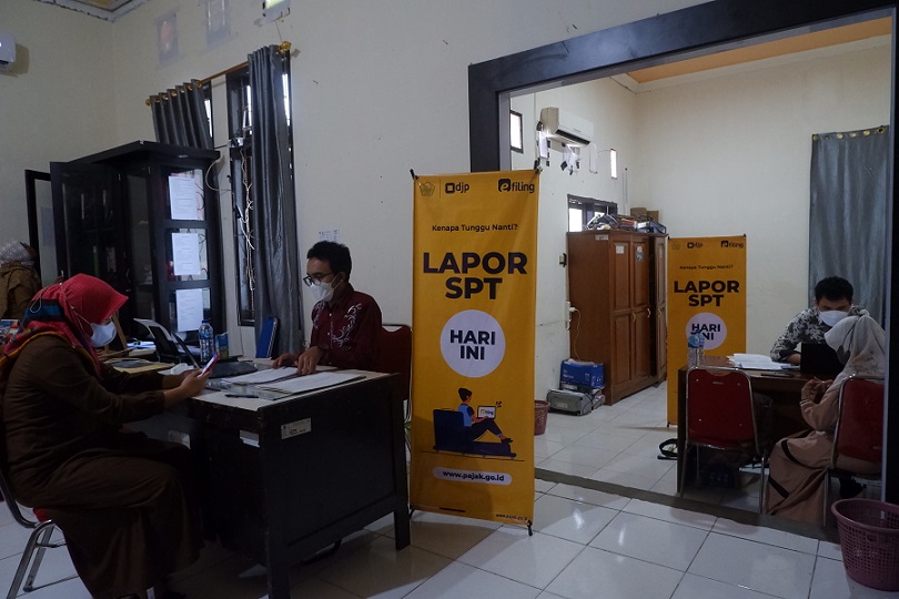 Kantor Pelayanan, Penyuluhan, dan Konsultasi Perpajakan (KP2KP) Tilamuta bersinergi dengan Dinas Koperasi Usaha Kecil dan Menengah Perindustrian dan Perdagangan (Diskoperindag) Kabupaten Boalemo untuk memberikan pelayanan langsung berupa asistensi dan pojok pajak dalam pelaporan Surat Pemberitahuan (SPT) Tahunan secara daring melalui e-Filing kepada para pegawai yang ada di lingkungan kantor Diskoperindag Kabupaten Boalemo, Gorontalo (Selasa, 15/03).