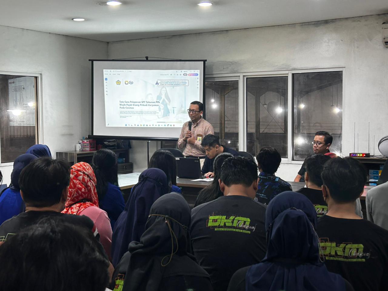 Tim Kantor Pelayanan Pajak (KPP) Madya Dua Semarang kunjungi CV Duta Karya Manunggal, Semarang, (Rabu, 12/3). Kegiatan ini membahas tata cara pelaporan Surat Pemberitahuan (SPT) Tahunan melalui Coretax, sekaligus menandai pembukaan Pojok Pajak. Penyuluh Pajak Susilo Prasetyo Utomo hadir sebagai narasumber tunggal, menyampaikan materi krusial bagi wajib pajak orang pribadi di perusahaan tersebut.