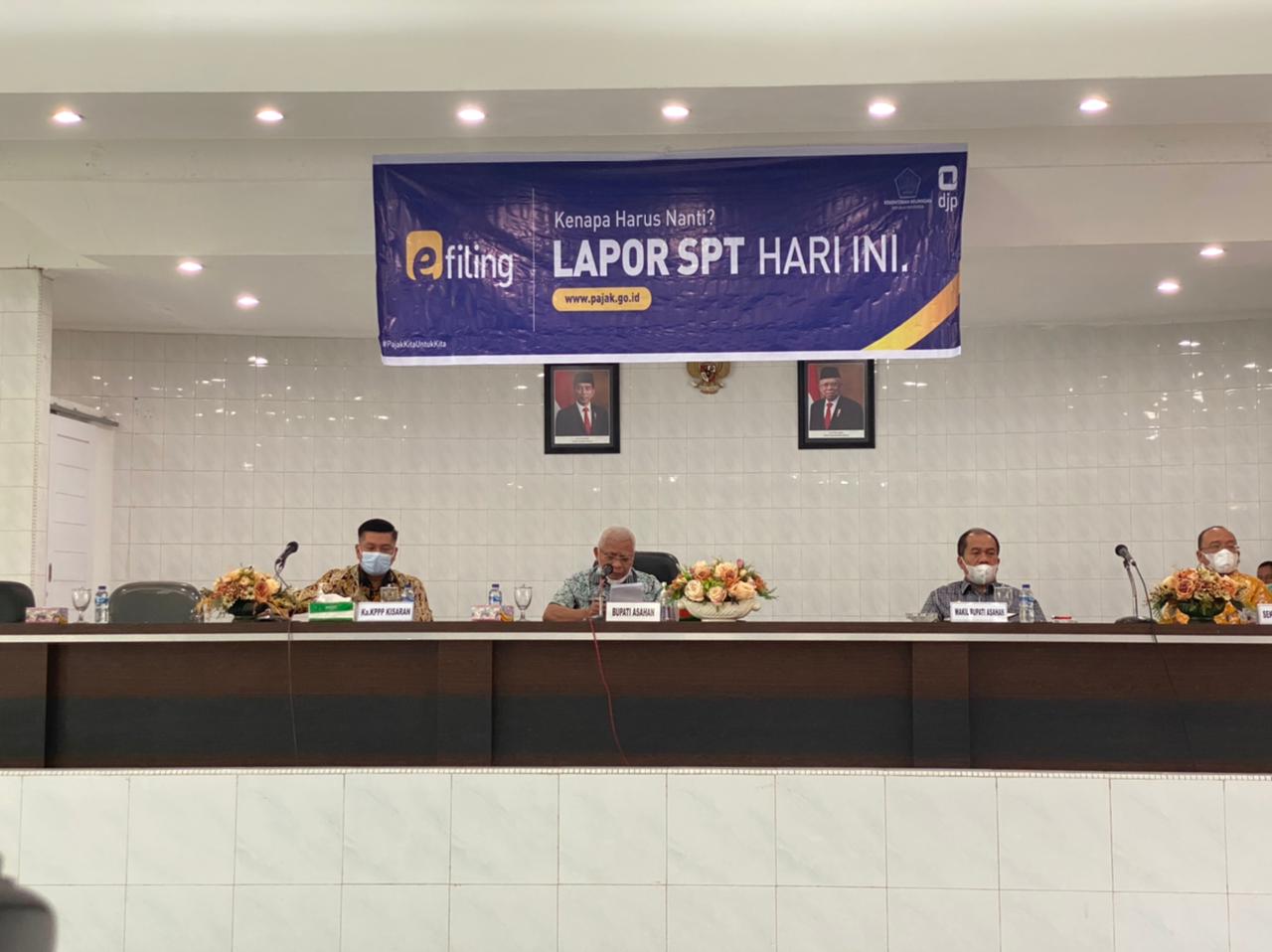 Bupati Asahan H. Surya mengajak para Aparatur Sipil Negara (ASN) dan masyarakat Kabupaten Asahan, khususnya yang telah terdaftar sebagai wajib pajak, untuk segera melaporkan Surat Pemberitahuan (SPT) Tahunan Pajak Penghasilan (PPh). Hal ini disampaikan Bupati Asahan dalam acara Pekan Panutan Pelaporan SPT Tahunan yang digelar bekerja sama dengan Kantor Pelayanan Pajak (KPP) Pratama Kisaran di aula Kantor Bupati Asahan, Kabupaten Asahan, Sumatera Utara (Kamis, 4/3).