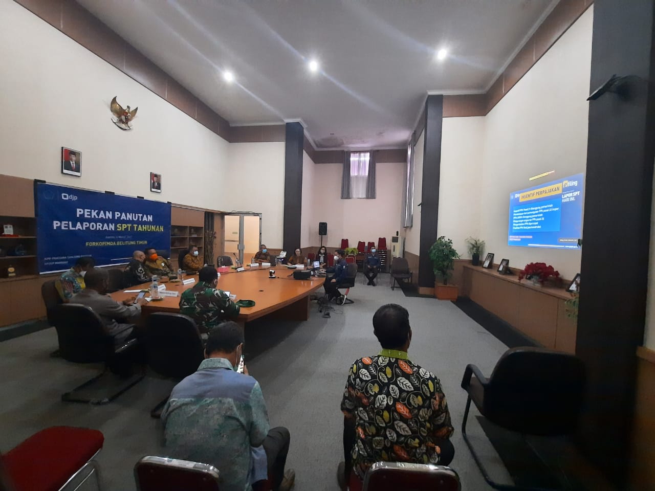 Kantor Pelayanan Pajak (KPP) Pratama Tanjung Pandan dan Kantor Pelayanan Penyuluhan dan Konsultasi Perpajakan (KP2KP) Manggar menyelenggarakan Pekan Panutan Pelaporan SPT Tahunan PPh Orang Pribadi Tahun 2021 di Aula Kantor Bupati Belitung Timur (Kamis, 4/3).