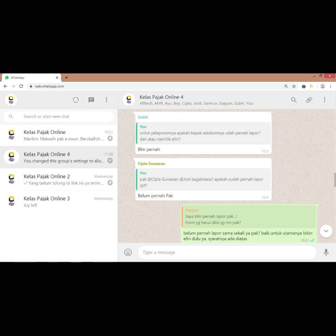 Kegiatan kelas pajak daring ini merupakan wujud dari Work From Home sebagai upaya untuk mencegah penyebaran Covid-19, dengan adanya kegiatan ini masyarakat tetap mendapatkan informasi dan layanan konsultasi di masa pandemi seperti ini.