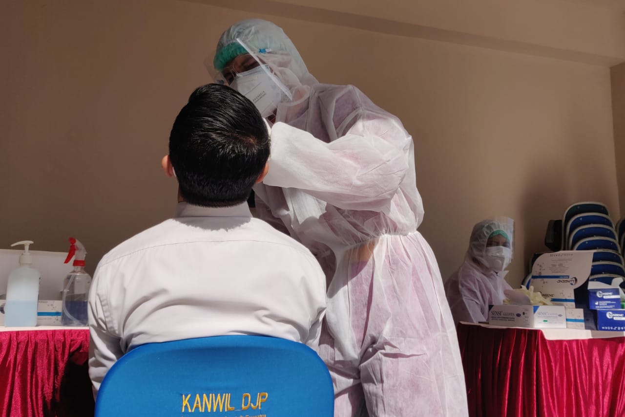 Kanwil DJP Sulawesi Selatan, Barat, dan Tenggara (Sulselbartra) melaksanakan kegiatan tes cepat antigen bagi seluruh pegawai yang dilangsungkan di area rooftop gedung Kanwil DJP Sulselbartra, Kota Makassar (Senin, 8/2).