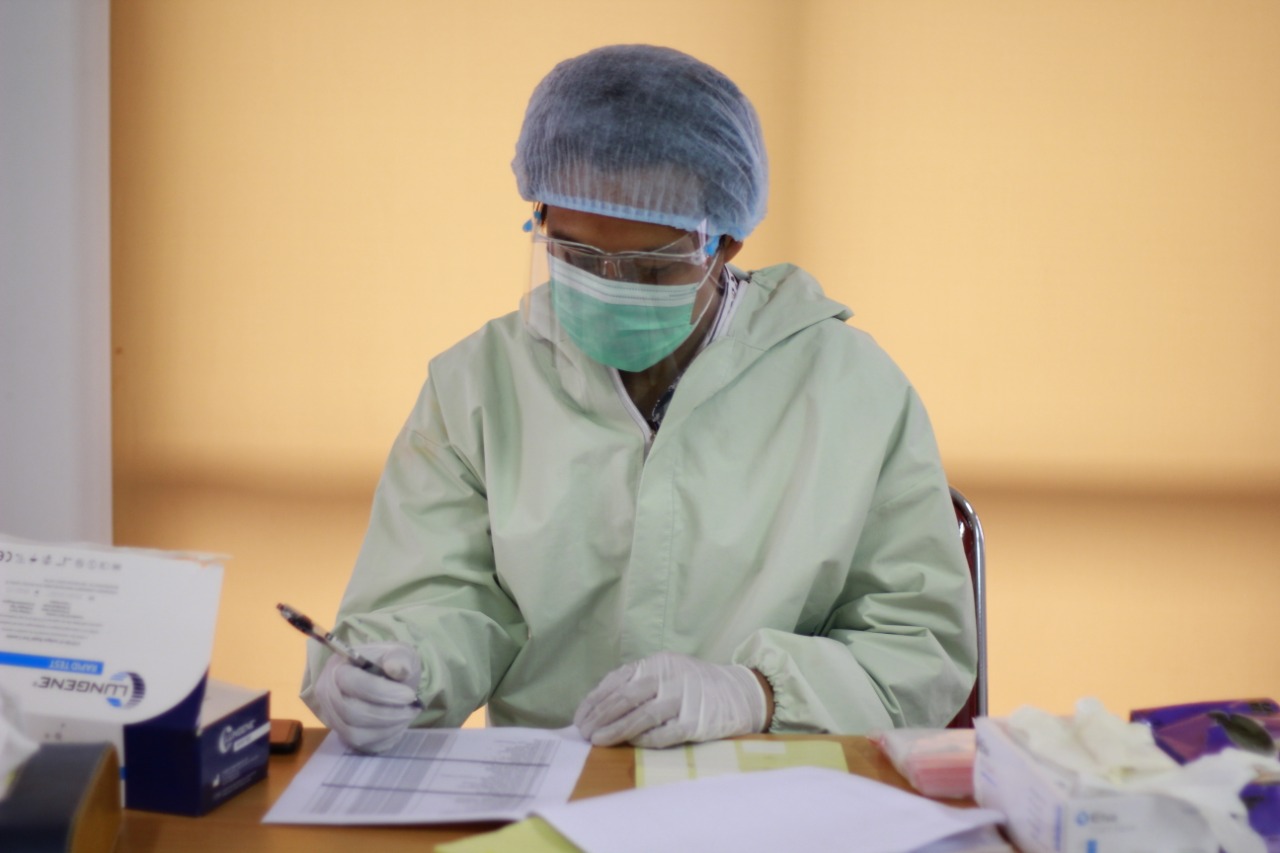 Kantor Pelayanan Pajak (KPP) Pratama Tigaraksa melakukan tes usap antigen kepada seluruh pegawai yang bertempat di aula KPP Pratama Tigaraksa, Tangerang (Selasa, 27/1). Kegiatan tes usap antigen merupakan salah satu kegiatan yang dilakukan sebagai upaya pencegahan rantai penyebaran Covid-19 dan mengantisipasi munculnya cluster perkantoran.