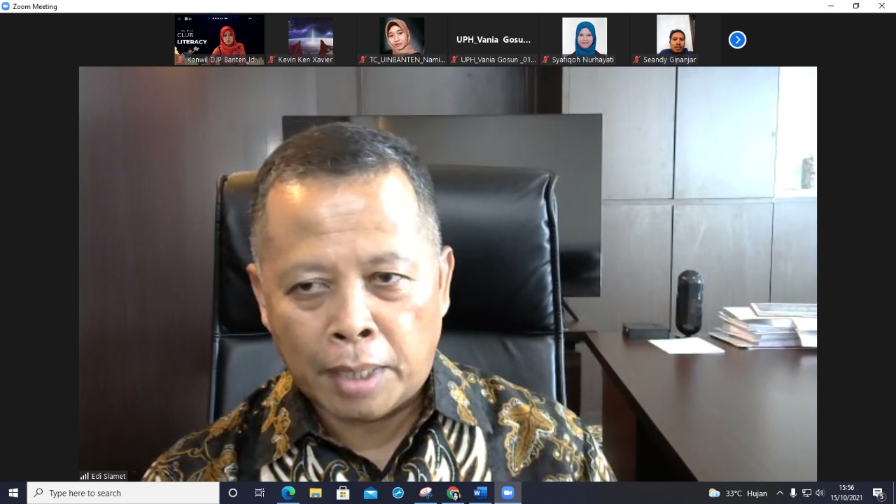Narasumber bincang santai kali ini adalah Kepala Kantor Wilayah DJP Jakarta Utara Dr. Edi Slamet Irianto, M.Si. Club Literacy dilaksanakan secara daring melalui aplikasi Zoom Meeting setiap hari Jumat jam 15.30 sampai dengan 16.30 WIB.