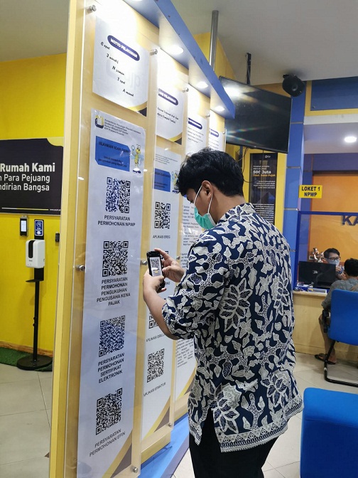 Barcode tersebut berisi tentang berbagai jenis persyaratan permohonan dan aplikasi pajak yang dapat dimanfaatkan oleh wajib pajak yang datang ke KPP. Informasi ditampilkan dalam bentuk barcode sehingga wajib pajak hanya perlu melakukan pemindaian pada barcode tersebut dengan menggunakan aplikasi atau kamera yang ada pada gawai masing-masing.