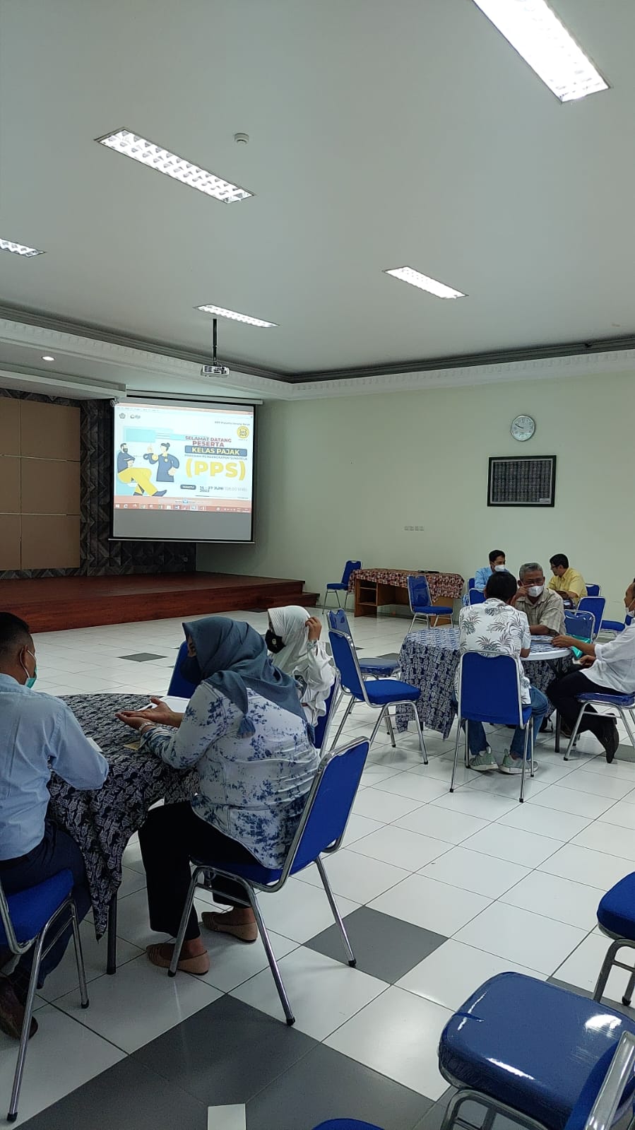 Pelaksanaan kegiatan ini untuk lebih memberikan pemahaman kepada Wajib Pajak terkait PPS. WP yang diundang adalah WP yang memiliki data PPS atau WP yang potensial mengikuti PPS. Pemateri Kelas Pajak adalah Fungsional Penyuluh, dan setelah selesai penyampaian materi, WP diarahkan untuk konsultasi/klarifikasi data dengan Account Representative masing-masing. WP yang diundang kali ini adalah WP dari Seksi Pengawasan IV.