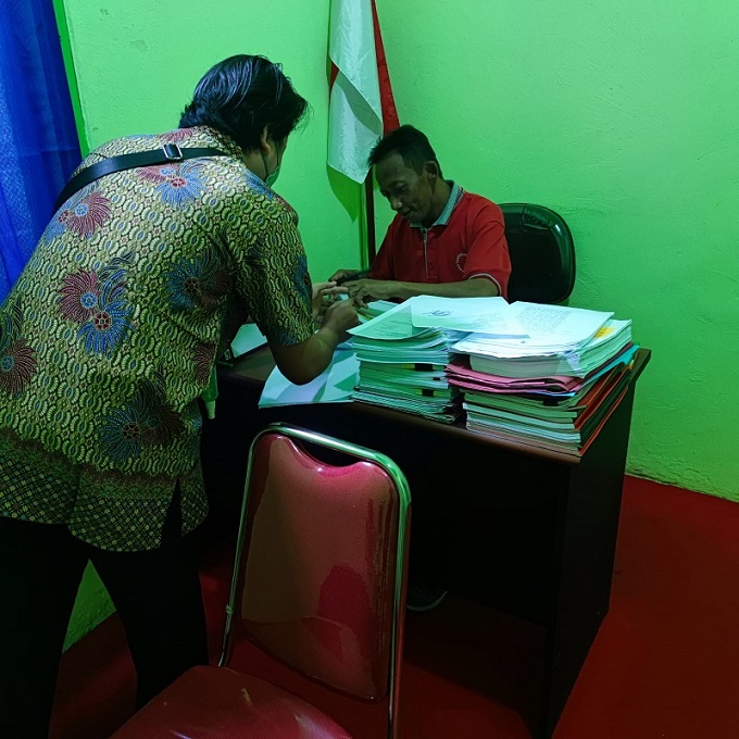 Pegawai KP2KP Sendawar menyambangi Kepala Kampung Linggang Purwodadi untuk mengkonfirmasi keberadaan Wajib Pajak yang ada di Linggang Purwodadi Kab. Kutai Barat (Jumat, 04/03).