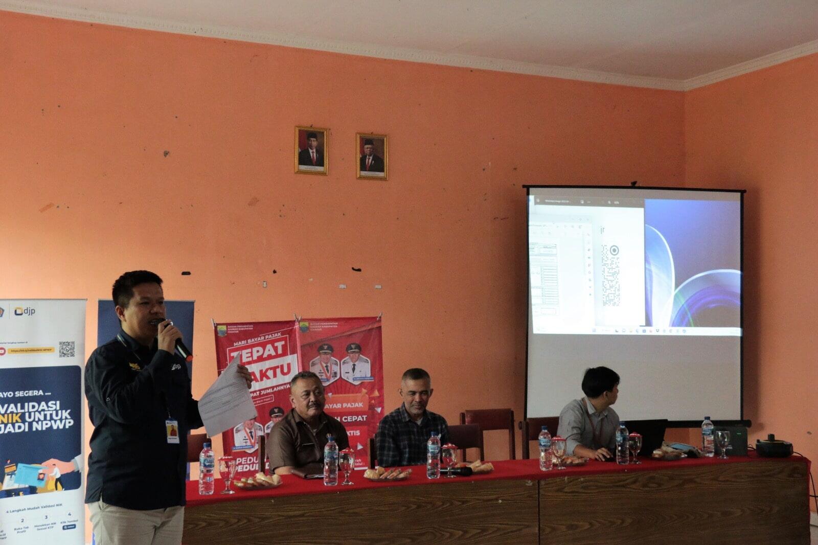 Tim Penyuluh Kantor Pelayanan Pajak (KPP) Pratama Cianjur mendatangi Kecamatan Sukanagara, Kabupaten Cianjur untuk memberikan Bimbingan Teknis Pelaporan Surat Pemberitahuan (SPT) Tahunan Wajib Pajak dan Pemadanan data NIK-NPWP. Kegiatan ini digelar di Aula Desa Sukamekar, Kecamatan Sukanagara, Kabupaten Cianjur (Kamis, 9/3).
