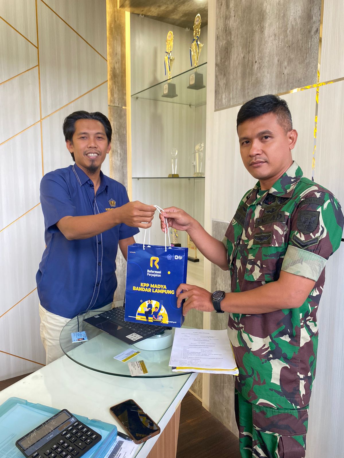 Kantor Pelayanan Pajak (KPP) Madya Bandar Lampung memberikan apresiasi kepada wajib pajak yang paling awal melaporkan Surat Pemberitahuan (SPT) Tahunan di KPP Madya Bandar Lampung, Kota Bandar Lampung (Rabu, 22/1). Apresiasi tersebut diberikan kepada sepuluh wajib pajak pertama yang melaporkan SPT Tahunan 2024, baik orang pribadi maupun badan.