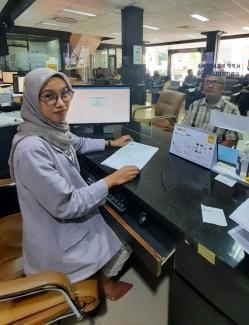Asisten Penyuluh Pajak Ambarwati Puspa Renaningtyas dengan sigap menyambut dan memberikan asistensi pelaporkan Surat Pemberitahuan (SPT) Tahunannya. Setelah itu, Ambar melakukan pengecekan kelengkapan berkas permohonan non efektif dan memberikan edukasi atas kewajiban perpajakan Olom setelah ditetapkan menjadi wajib pajak non efektif.
