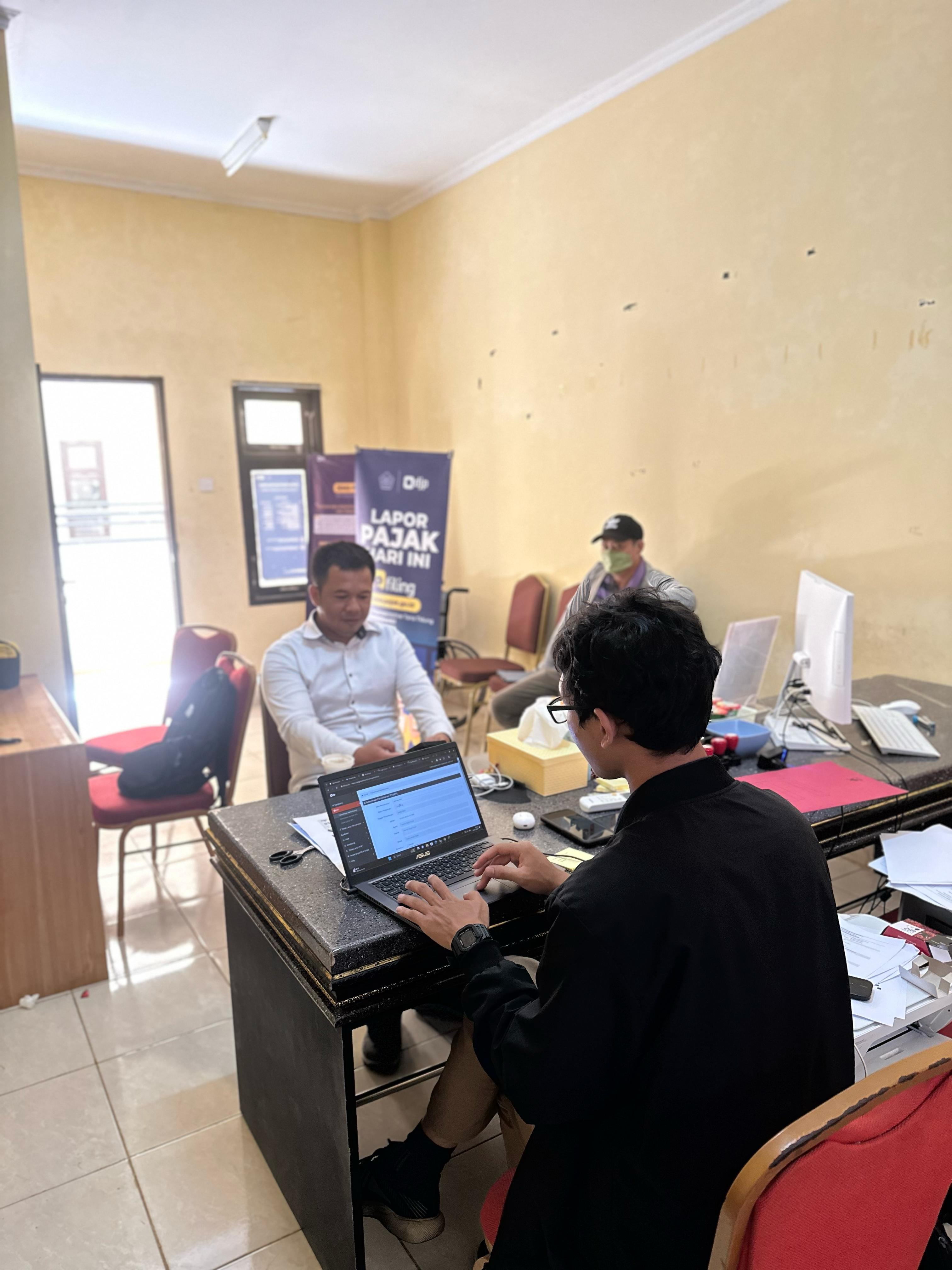Bendahara Desa Seludai Sudirman Hermansyah berkunjung ke Pos Pelayanan Pajak Tana Tidung di Jalan Perintis, Kelurahan Tideng Pale, Kecamatan Sesayap, Kabupaten Tana Tidung (Kamis, 29/2). Kunjungan ini dalam rangka untuk berkonsultasi terkait pemungutan dan penyetoran Pajak Penghasilan (PPh) Pasal 23.