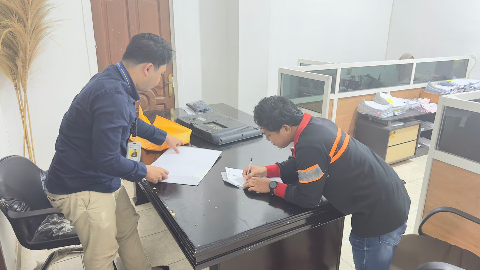 KPP Pratama Tanjung Redeb menerjunkan Account Representative Seksi Pengawasan I Harris Rifkiyuwono dan Chantia Riva Siallagan serta Pelaksana Seksi Pengawasan I Fikri harris untuk bertemu langsung dengan Direktur CV Juwita Bengkel.