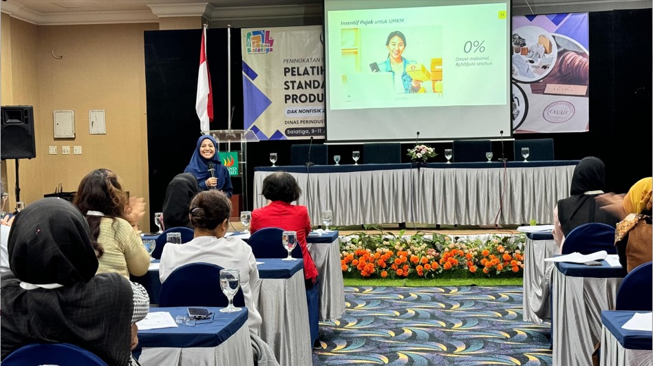Kantor Pelayanan Pajak (KPP) Pratama Salatiga mengadakan kegiatan Pelatihan Penerapan Standarisasi dan Sertifikasi Produk bagi Pelaku Industri Kecil Menengah (IKM) Kota Salatiga di Salatiga (Rabu, 10/7). Kegiatan yang diselenggarakan oleh Dinas Perindustrian dan Tenaga Kerja Kota Salatiga tersebut dimulai pukul 08.00 sampai dengan 12.00 WIB.