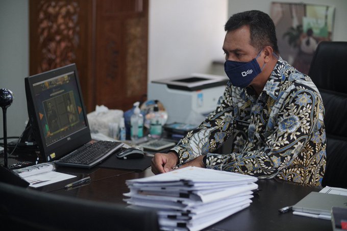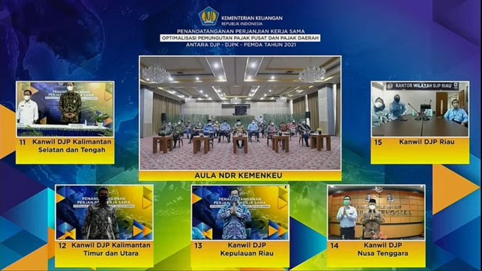 Kepala Kantor Wilayah DJP Kalimantan Timur dan Utara (Kanwil DJP Kaltimtara) Max Darmawan menghadiri Penandatanganan Perjanjian Kerja Sama Optimalisasi Penerimaan Pajak Pusat dan Pajak Daerah yang digelar secara daring dari Gedung Kanwil DJP Kaltimtara (Rabu, 21/4)