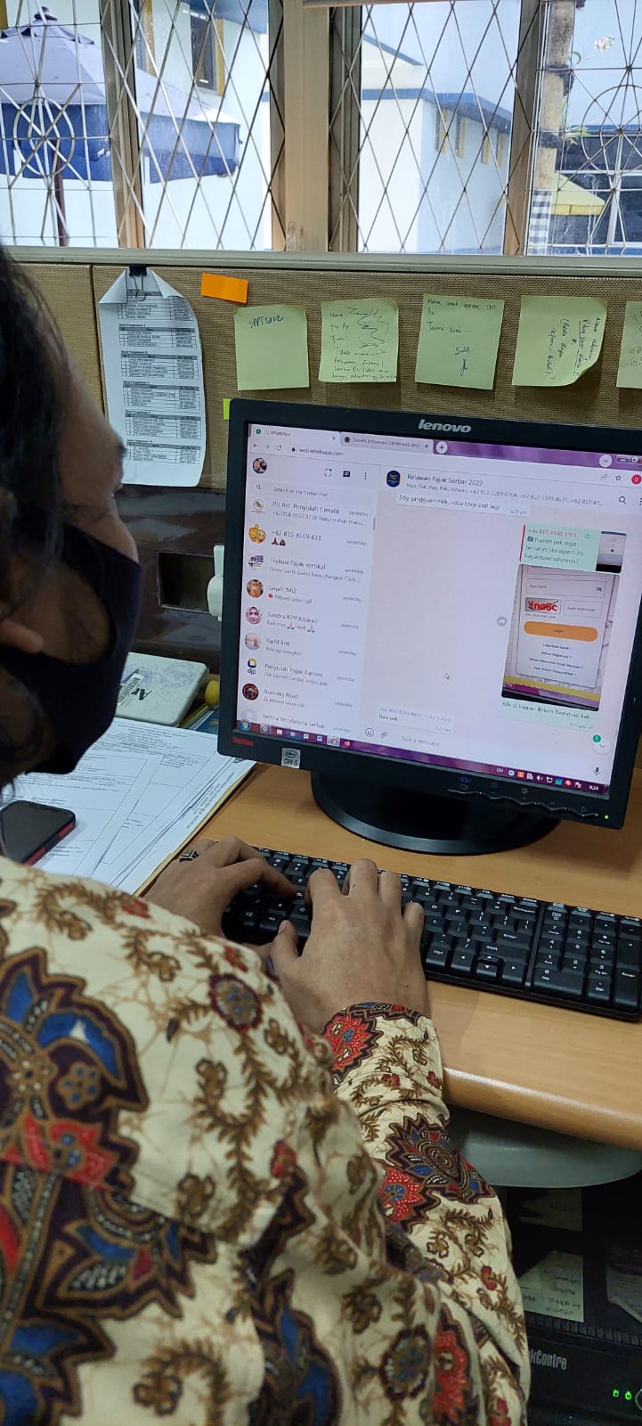 Kantor Pelayanan Pajak (KPP) Pratama Serang Barat melakukan pendampingan Relawan Pajak melalui saluran WhatsApp sebagai olusi atas kendala yang ditemui para relawan pajak saat melakukan asistensi pengisian SPT Tahunan kepada Wajib Pajak dari KPP Pratama Serang Barat, Kota Serang (Senin, 21/03).