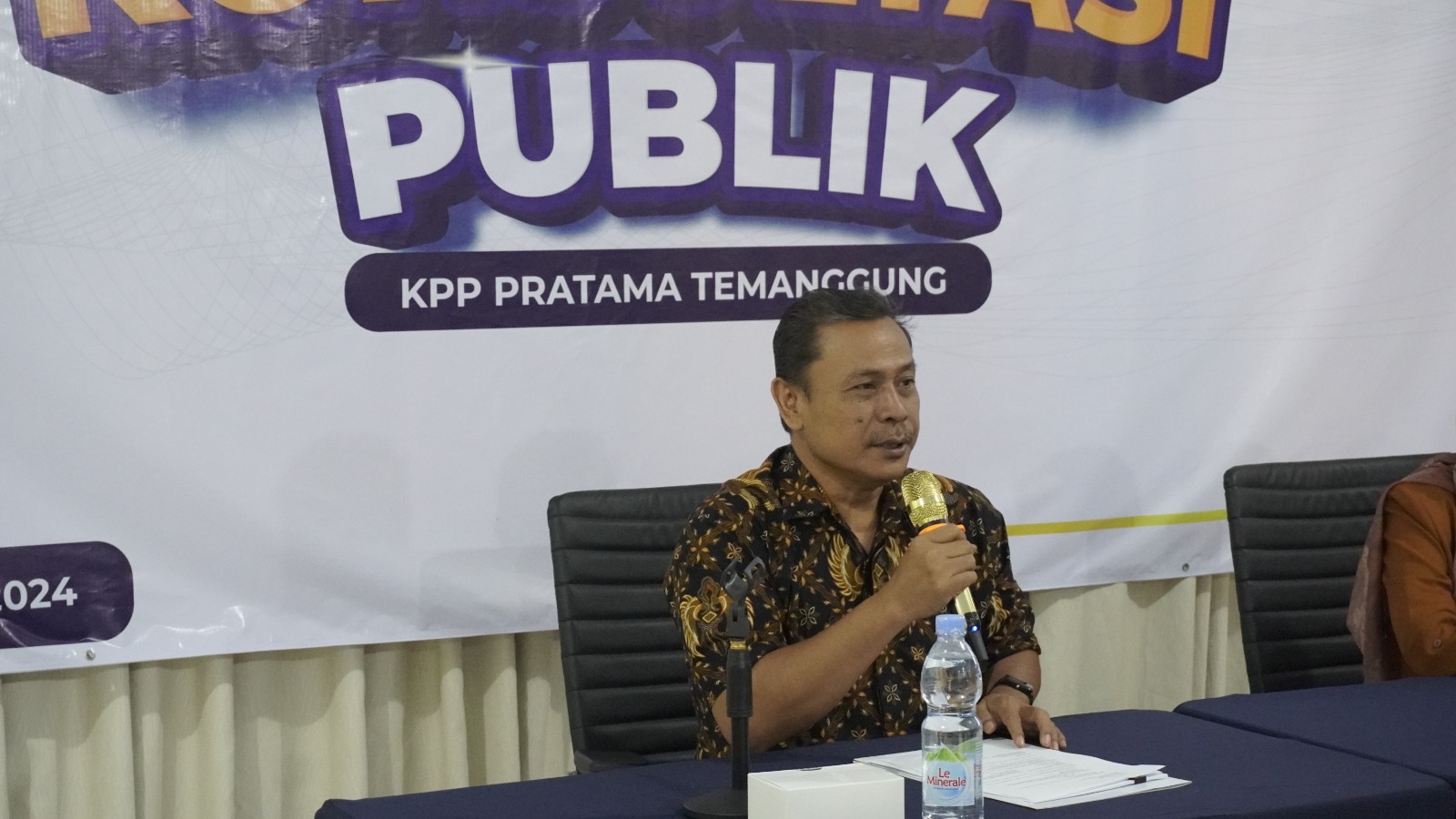Kantor Pelayanan Pajak (KPP) Pratama Temanggung menyelenggarakan kegiatan Forum Konsultasi Publik (FKP) di Aula KPP Pratama Temanggung Jl. Dewi Sartika No 7 Temanggung (Selasa, 19/11). Kegiatan FKP dihadiri oleh para wajib pajak pengguna utama layanan perpajakan, instansi pemerintah, akademisi, perwakilan ikatan notaris, dan perwakilan ikatan bidan. Mengusung tema Pelayanan Prima, Penerimaan Pajak Menyala, FKP dibuka oleh Kepala KPP Pratama Temanggung Christijanto Wahju Purwoistijoko.