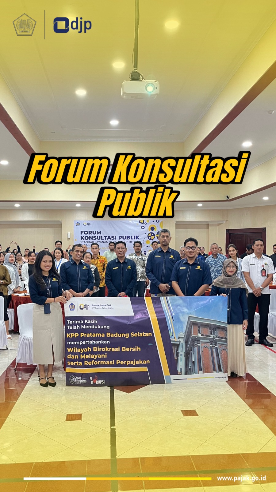 Kantor Pelayanan Pajak (KPP) Pratama Badung Selatan berkolaborasi dengan KPP Pratama Denpasar Timur dalam mengadakan Forum Konsultasi Publik yang bertempat di Aula Gedung Keuangan Negara II Denpasar, Bali (24/7). Forum Konsultasi Publik dilaksanakan dalam rangka peningkatan standar pelayanan publik di lingkungan Kementerian Keuangan, khususnya di lingkungan Direktorat Jenderal Pajak guna memberikan pelayanan yang lebih baik.