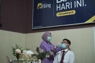 Kantor Pelayanan, Penyuluhan, dan Konsultasi Perpajakan (KP2KP) Malili mengadakan tes usap antigen untuk seluruh pegawai bertempat di ruang rapat lantai dua gedung KP2KP Malili, Luwu Timur (Senin, 15/3). Tes usap antigen ini dilakukan untuk lima orang pegawai berstatus Pegawai Negeri Sipil (PNS) dan enam orang pegawai yang merupakan Pegawai Pemerintan Non-Pegawai Negeri Sipil (PPNPN).