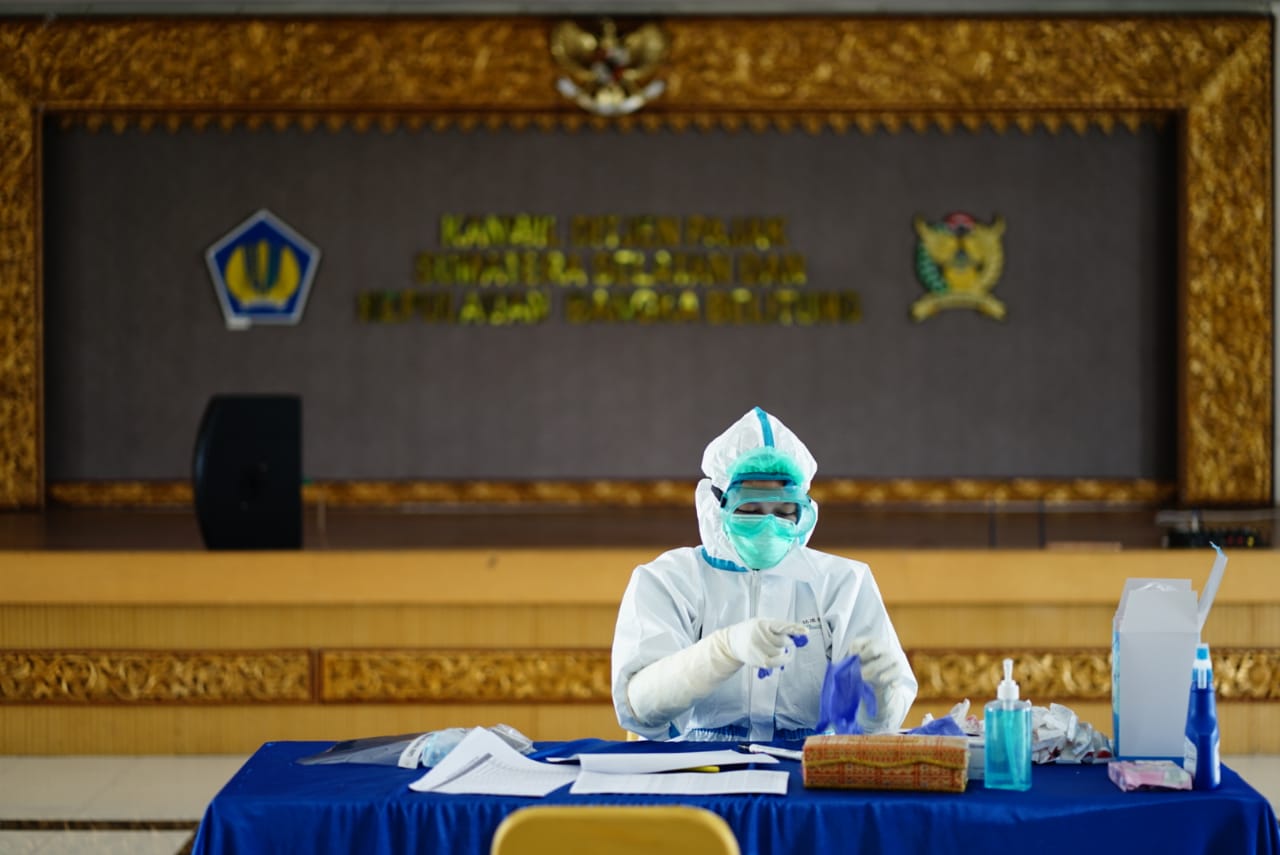 Kanwil DJP Sumatera Selatan dan Kepulauan Bangka Belitung mengadakan tes usap Covid-19 kepada seluruh pegawai di Aula Kanwil di Palembang (Selasa, 15/12). Kegiatan tersebut bertujuan untuk menghambat penyebaran wabah Covid-19. Langkah penanganan bisa segera diambil apabila ada pegawai yang terdeteksi positif.