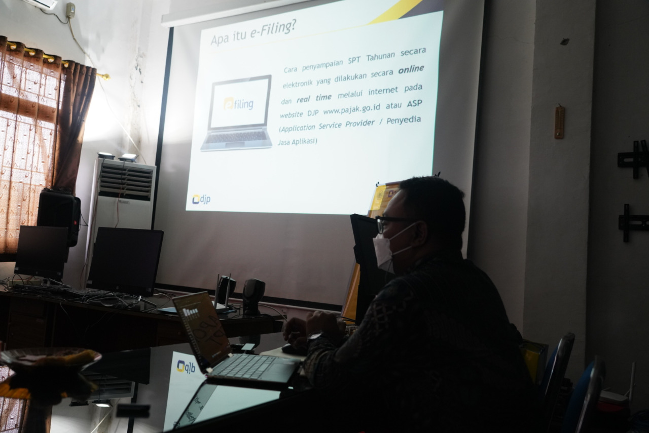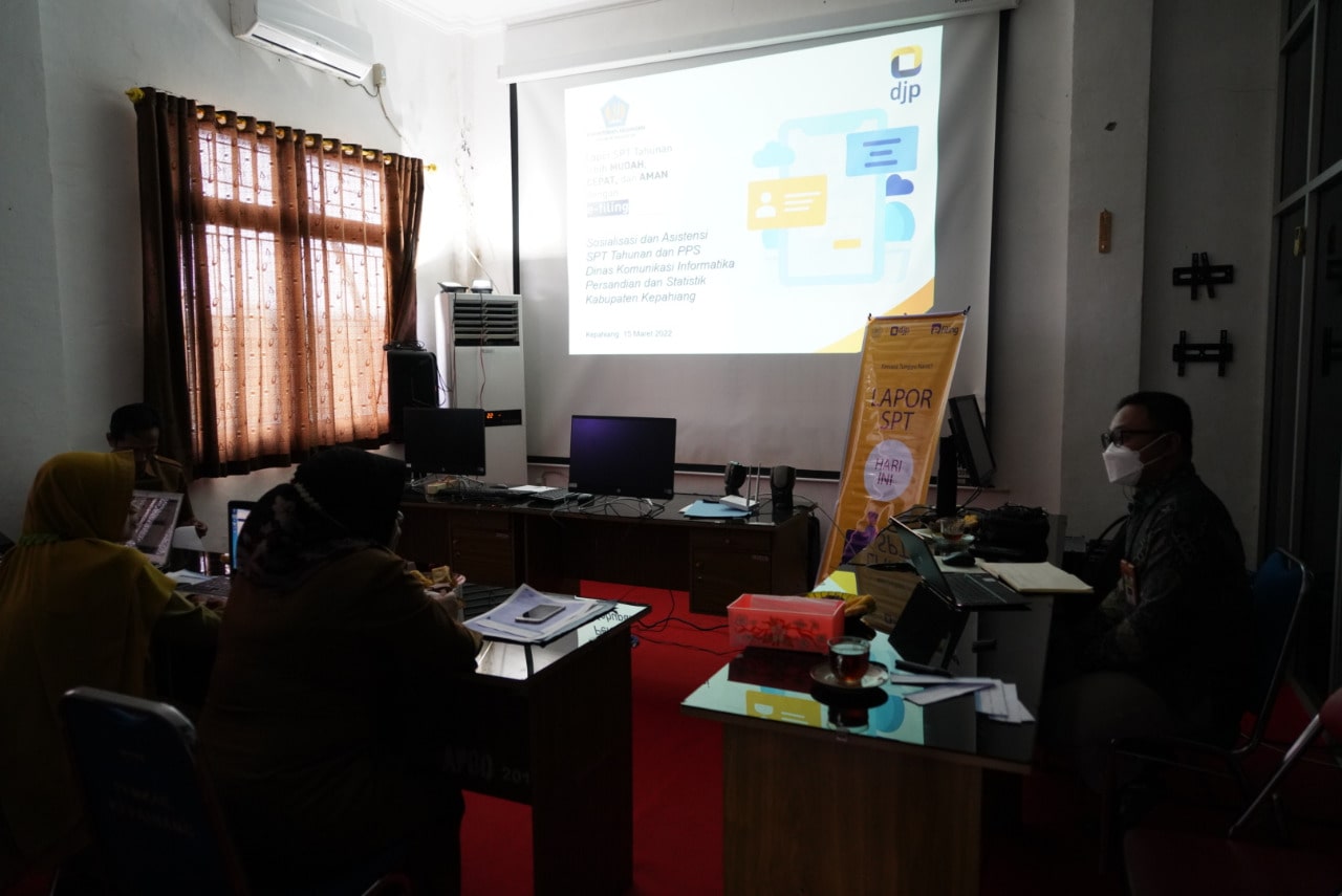Kantor Pelayanan, Penyuluhan, dan Konsultasi Perpajakan (KP2KP) Kepahiang melaksanakan kegitan asistensi pelaporan SPT Tahunan kepada seluruh pegawai Dinas Komunikasi Informatika Persandian dan Statistik (Diskominfopersantik) melalui e-filling yang dilaksanakan di ruang rapat Dinas Kominfopersantik, Kab. Kepahiang, Bengkulu (Kamis, 17/3).
