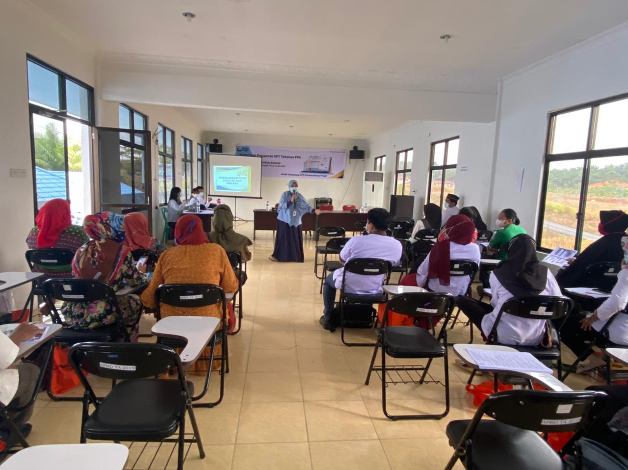 Kantor Pelayanan Pajak (KPP) Pratama Rantau Prapat mengadakan edukasi perpajakan terkait pelaporan SPT Tahunan ke pegawai Pendidikan Anak Usia Dini (PAUD) Dinas Pendiidkan Labuhan Batu Selatan di Desa Sosopan Kecamatan Kota Pinang Kabupaten Labuhan Batu Selatan, Sumatera Utara (Rabu, 1/12).