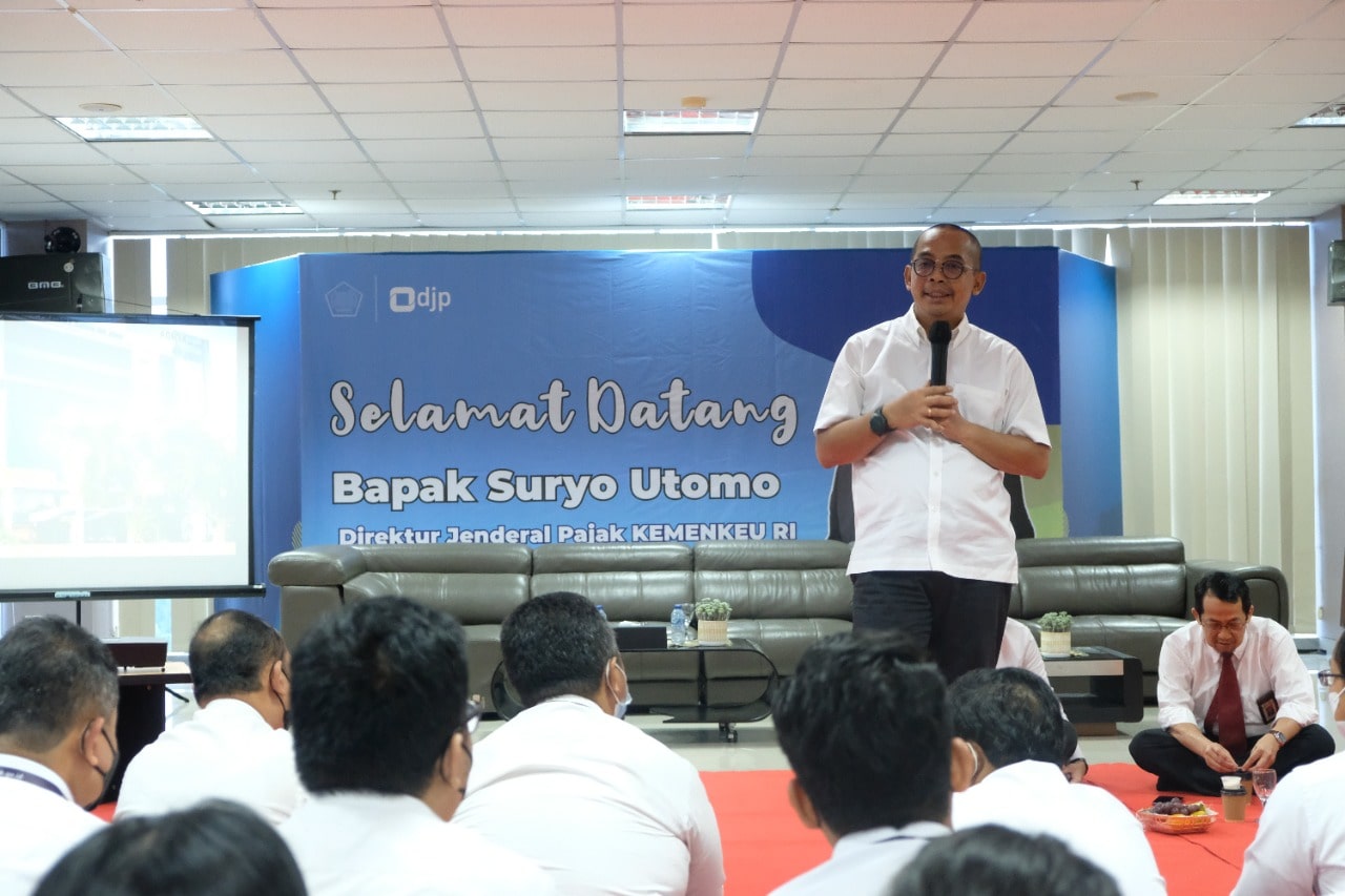 Bertempat di aula kantor yang terletak di lantai 5 gedung ATB Sukajadi, Suryo Utomo menyampaikan pengarahan dan motivasi serta berdialog secara langsung dengan para pegawai. Suryo Utomo juga melihat langsung Tempat Pelayanan Terpadu (TPT), yang merupakan gerbang utama pelayanan yang diberikan secara langsung kepada wajib pajak.