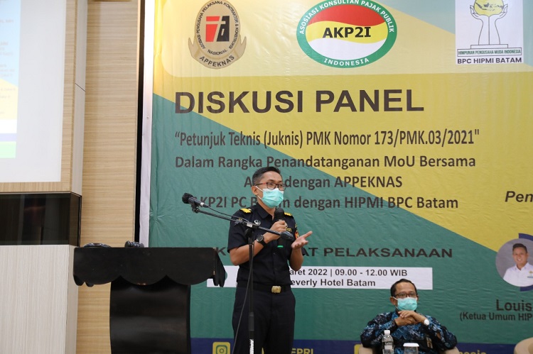 Fungsional Penyuluh Pajak Ahli Madya Suyamto membahas Peraturan Menteri Keuangan Nomor PMK-173/PMK.03/2021 (PMK-173). PMK-173 ini mengatur tentang administrasi perpajakan di Kawasan Perdagangan Bebas dan Pelabuhan Bebas (KPBPB)/Free Trade Zone (FTZ). Selain Kanwil DJP Kepri, Kantor Pelayanan Utama Bea dan Cukai Tipe B Batam (KPU BC Batam) turut menjadi salah satu narasumber pada acara diskusi panel ini.