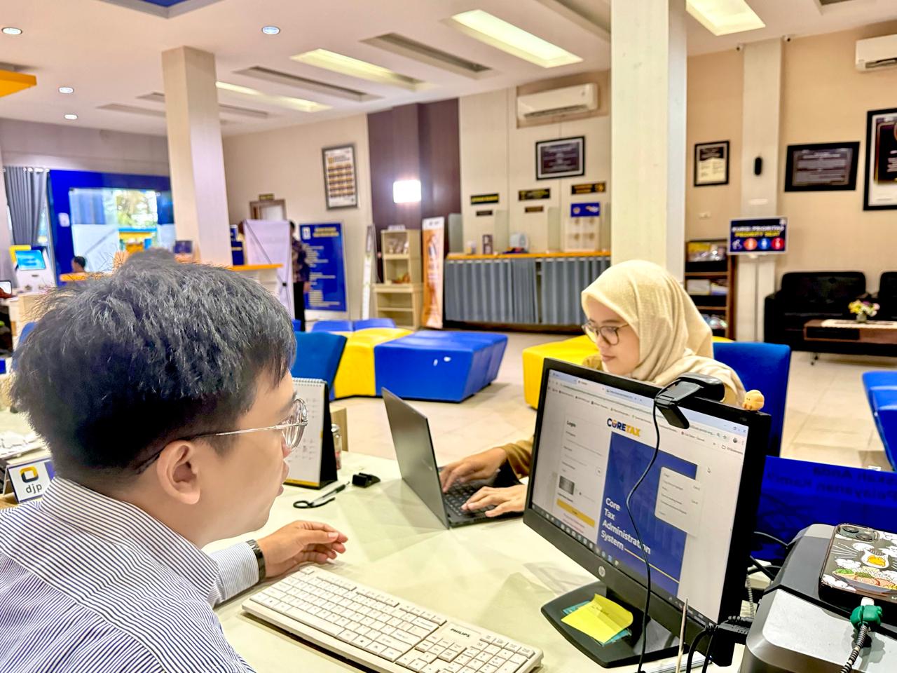 Selain penjelasan kepada wajib pajak, petugas memberikan asistensi terkait dengan akses Coretax DJP. Petugas memastikan akun Disnakertrans dan akun pribadi PIC tersambung pada email dan nomor telepon yang aktif dan dapat diakses. Petugas juga memperkenalkan kembali fitur-fitur yang tersedia pada aplikasi Coretax DJP sebagai upaya familiarisasi.
