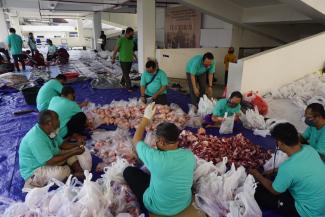 Sejumlah panitia bergerak ke RPH sebagai saksi dalam pemotongan kurban. Proses penyembelihan disiarkan langsung melalui akun Youtube DKM Kanwil sebagai bentuk pertanggungjawaban kepada yang melakukan kurban. Setelah penyembelihan dan pemotongan besar selesai, panitia kurban bergerak ke tempat pencacahan dan pendistribusian yang dilakukan di lapangan parkir Kanwil DJP Jawa Barat III. Baik panitia maupun warga yang diberikan tetap menerapkan protokol kesehatan baik dalam proses pencacahan dan pendistribusian.