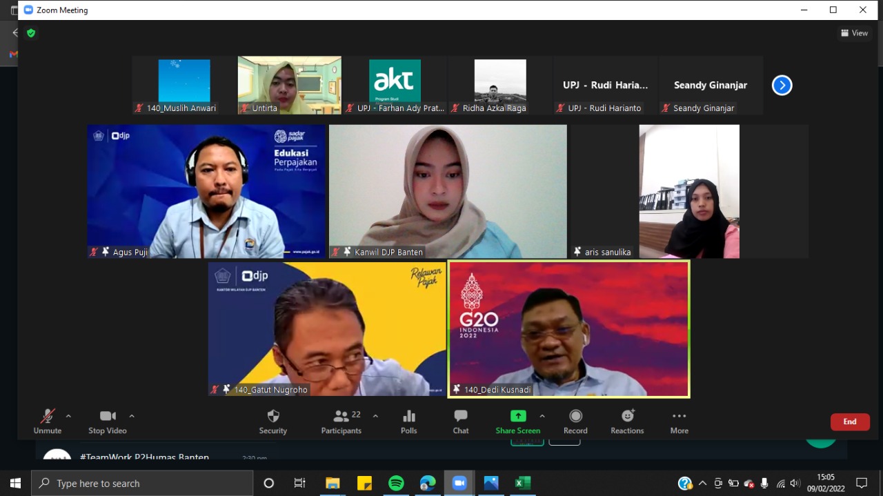 Kantor Wilayah DJP Banten bersama relawan pajak nonmahasiswa yang terdiri dari para dosen di lingkungan tax center Provinsi Banten dan Ikatan Akuntan Indonesia (IAI) Provinsi Banten melakukan kegiatan pembekalan kepada relawan pajak secara daring melalui aplikasi zoom cloud meeting di Kota Serang, Banten (Rabu, 9/2).