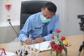 Melalui Zoom Clouds Meeting, Kepala Kantor Wilayah DJP Kalimantan Timur dan Utara Samon Jaya bersama Rektor Institut Teknologi Kalimantan Prof. Budi Santosa, M.S., Ph.D menandatangani MoU tersebut.