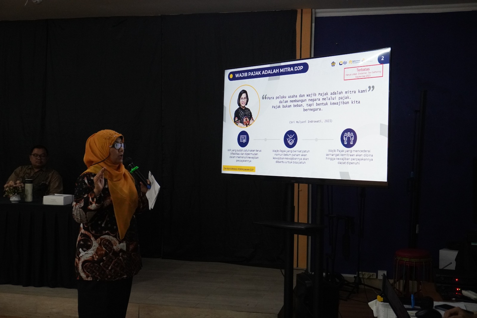 Kepala Kantor Pelayanan Pajak Pratama (KPP) Duren Sawit menyampaikan informasi mengenai Reformasi Perpajakan kepada Bendaharawan Instansi Pemerintah di Jakarta (Jumat, 1/12).